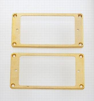 Humbucking pickup ring set - neck and bridge, slanted. Gold plated plastic.